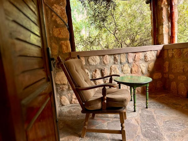Ce bungalow comprend une chambre, une salle de bains avec douche, un coin salon et une terrasse. Il est climatisé et dispose d'un coin repas, d'une armoire et d'un balcon offrant une vue sur la montagne. Le logement est équipé d'un lit.