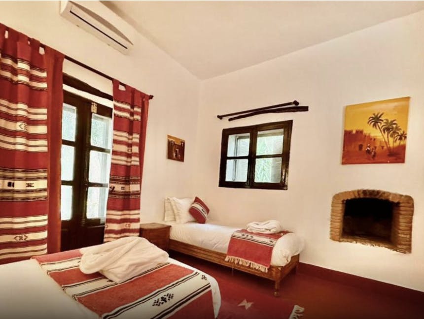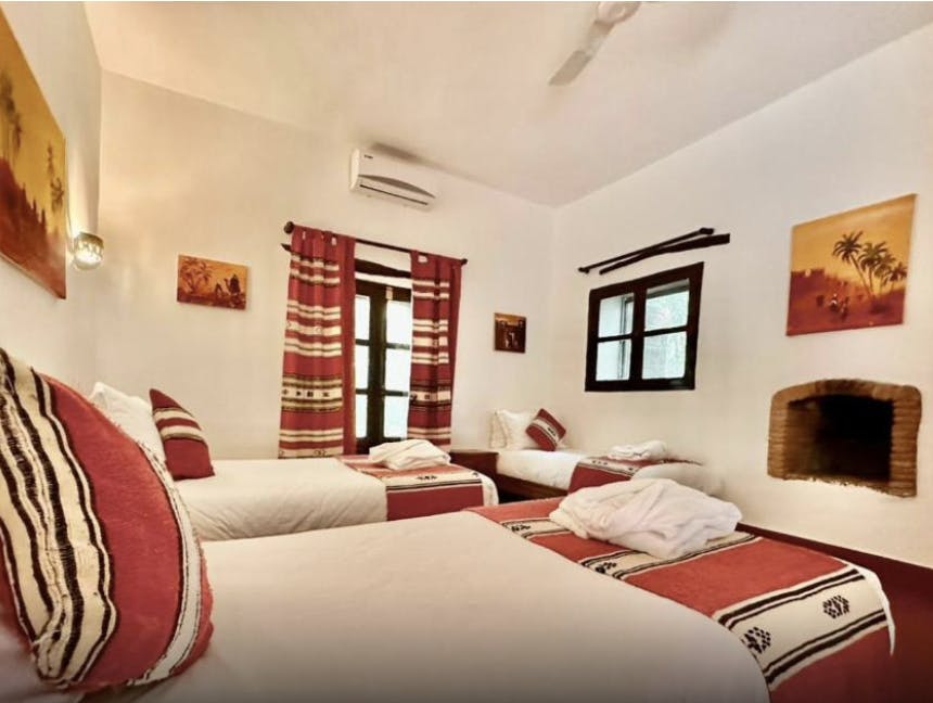 Cette grande chambre triple est climatisée et comprend un coin salon confortable ainsi qu'une salle de bains privative avec douche. Elle est équipée de trois lits.